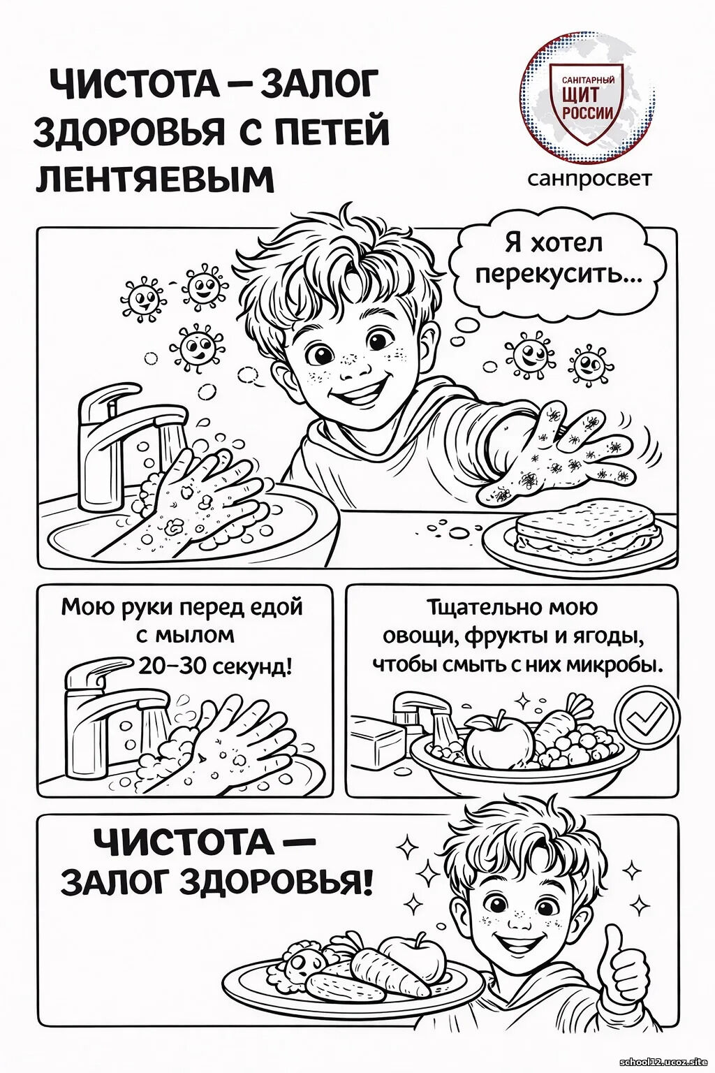 Также в рамках проекта «Санпросвет» Роспотребнадзор запускает для детей серию раскрасок, комиксов и инфографики с героем детского «Санпросвета» Петей Лентяевым.