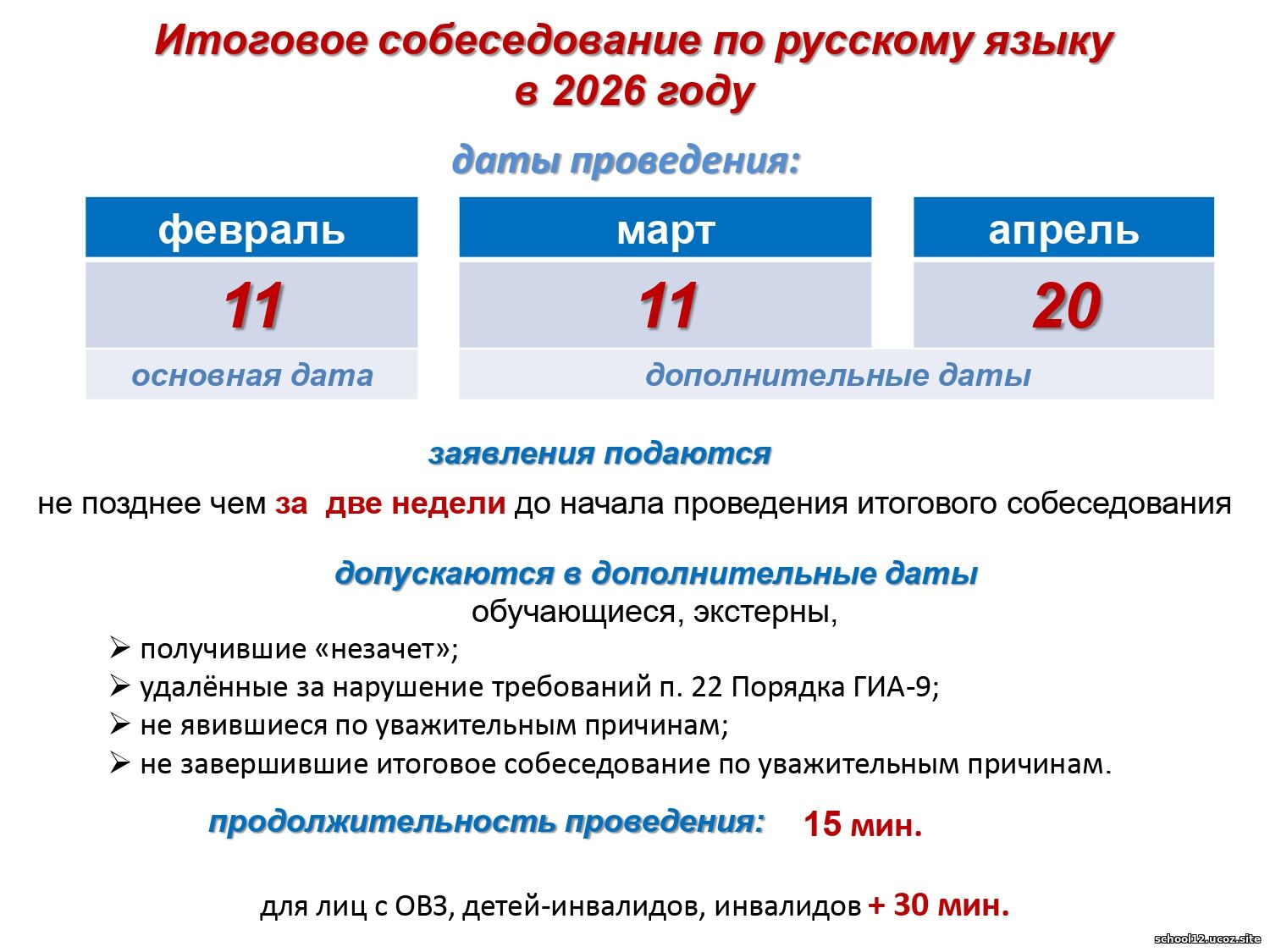 Итоговое собеседование по русскому языку проводится в соответствии с Федеральным законом «Об образовании в Российской Федерации» от 29.12.2012 г. № 273-ФЗ и Порядком проведения государственной итоговой аттестации по образовательным программам основного общего образования, утверждённым приказом Минпросвещения России и Рособрнадзора от 07.11.2018 г. № 189/1513 (зарегистрирован Минюстом России 10.12.2018, регистрационный № 52 953).