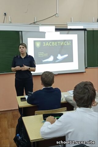 В преддверии осенних каникул в МБОУ СОШ № 12 сотрудник Госавтоинспекции УМВД России по г.о. Королев провела профилактические беседы с учениками 3-7 классов. Основной темой разговора было поведение детей на дорогах в темное время суток. |