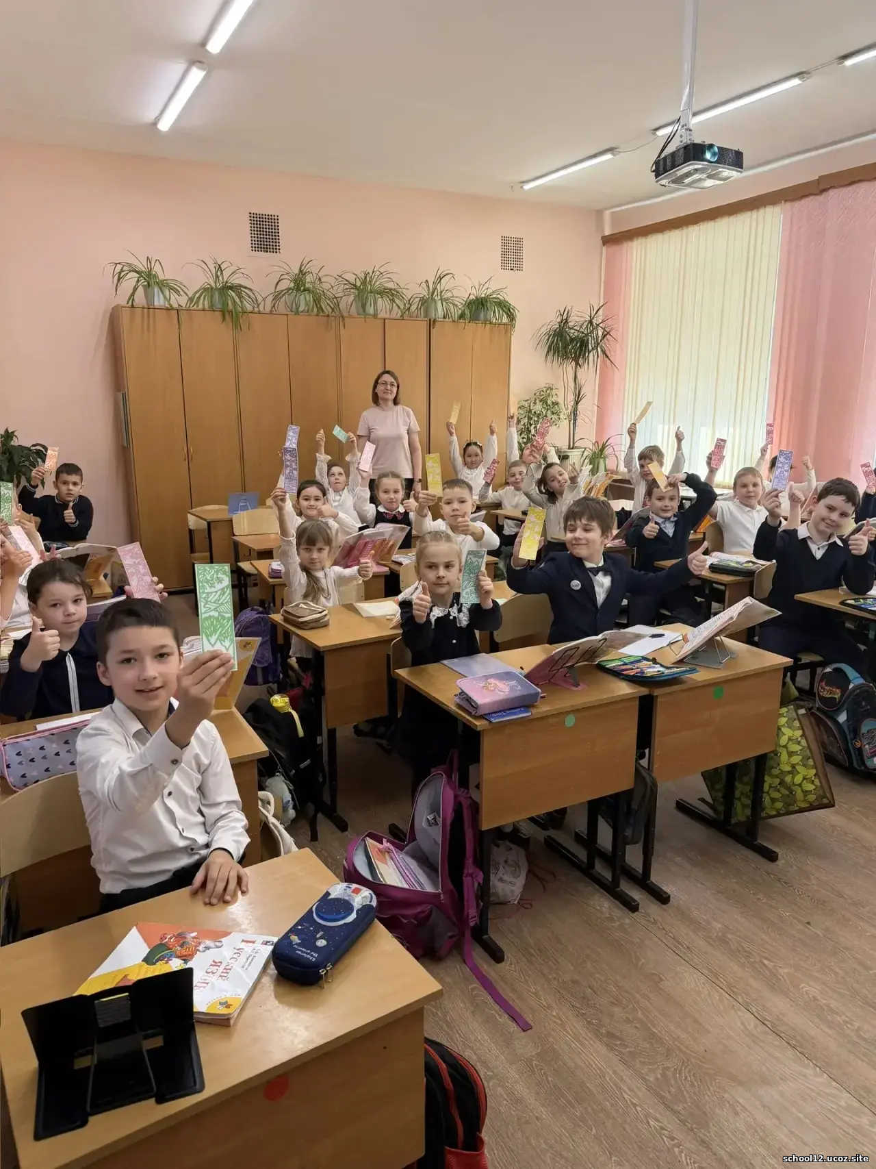 Каждый новый читатель получил в подарок закладку для первых в своей жизни школьных библиотечных книг.