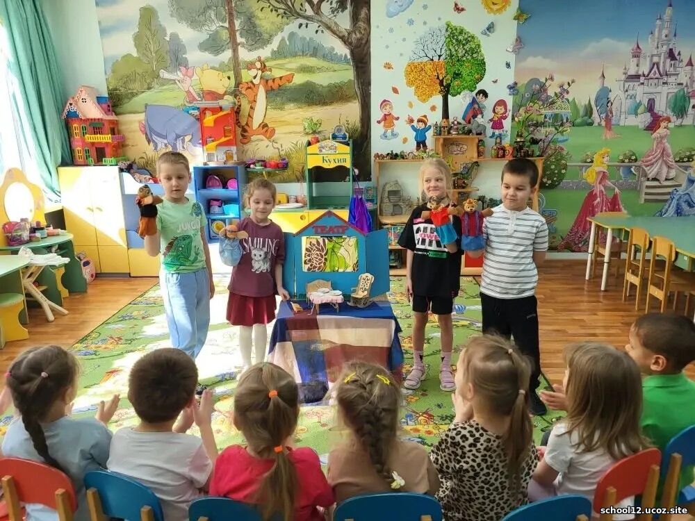В рамках реализации проекта "Предшкола стандарт детского сада" на тематической неделе с 16.02.2026 по 22.02.2026 "Театр детей" в МБОУ СОШ N12 городского округа Королев Московской области в подготовительной группе "Пчелка", с помощью кукольного театра ребята подготовили и инсценировали сказку "Теремок"