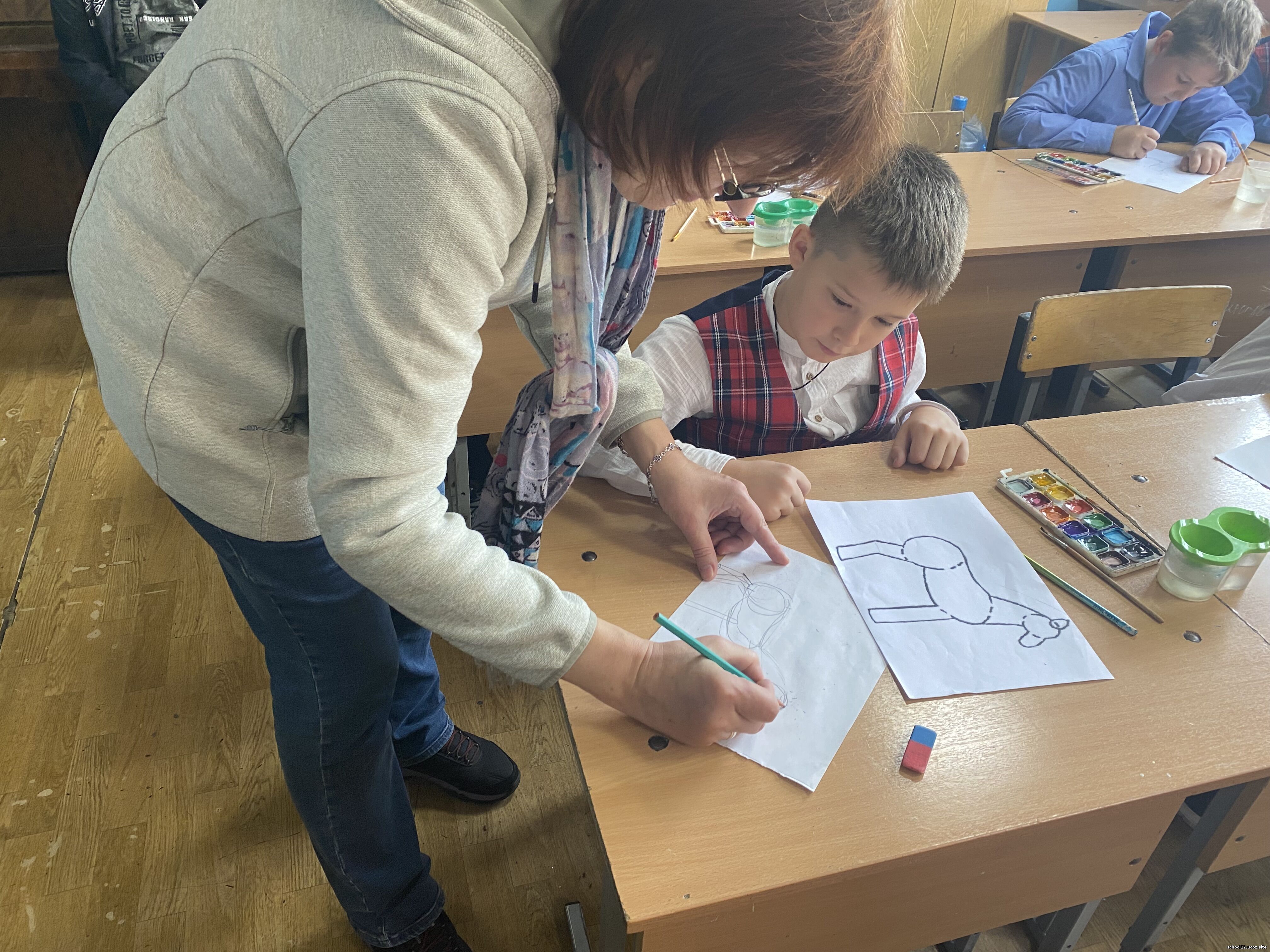 В заключении ребята нарисовали иллюстрацию к одному из его художественных произведений "Конь Мишка".