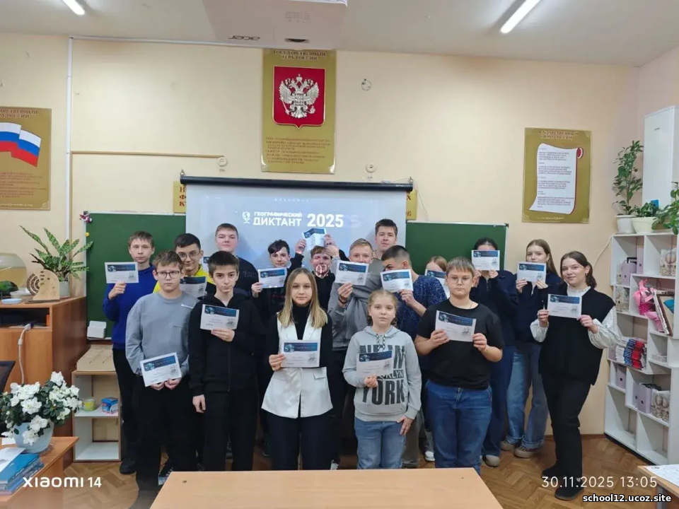 30 ноября МБОУ СОШ 12 стала единственной в городе очной площадкой проведения Географического диктанта-2025. Учащиеся нашей школы и их родители приняли участие в ежегодной международной акции, организованной Русским географическим обществом.