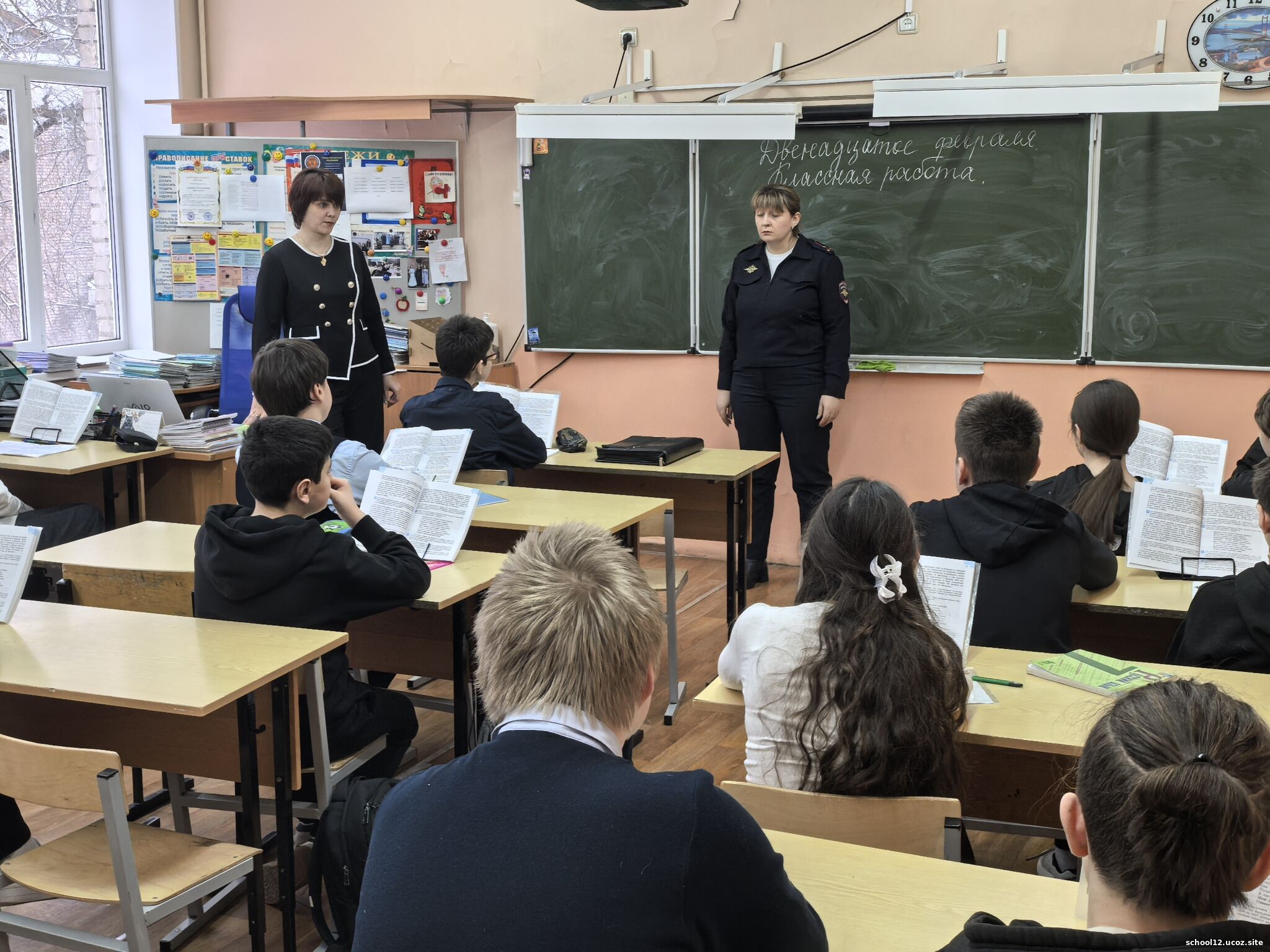 Сегодня для учеников 7-11 классов старший инспектор ОДН УМВД России по г.о. Королёв, старший лейтенант полиции Г.И. Тишкина провела профилактические беседы на темы "Возраст наступления ответственности. Правонарушение, проступок и преступление", "Онлайн-общение: как распознать опасного собеседника и предотвратить манипуляцию", "Опасный контент: что делать, если столкнулся"
