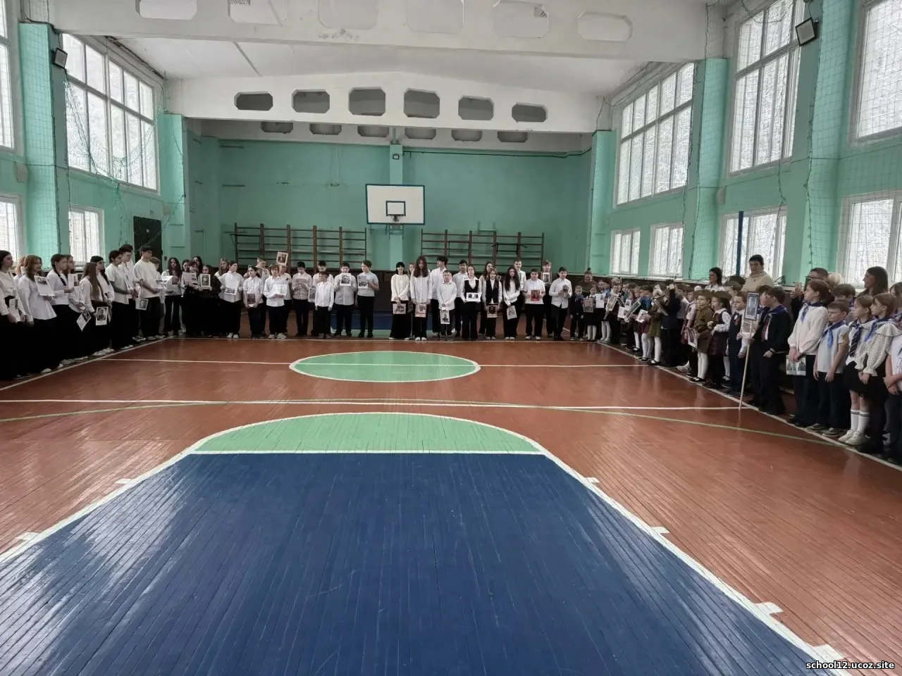 Многие принесли на линейку портреты своих ветеранов, для того чтобы почтить их память и отдать дань уважения подвигу, который они совершили.