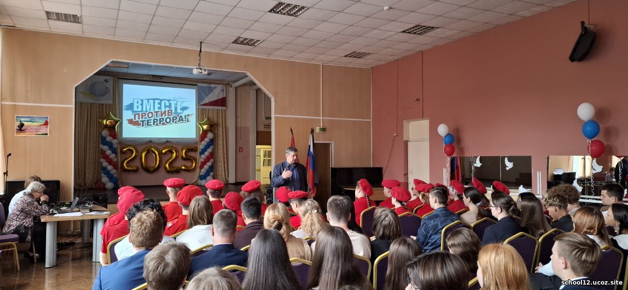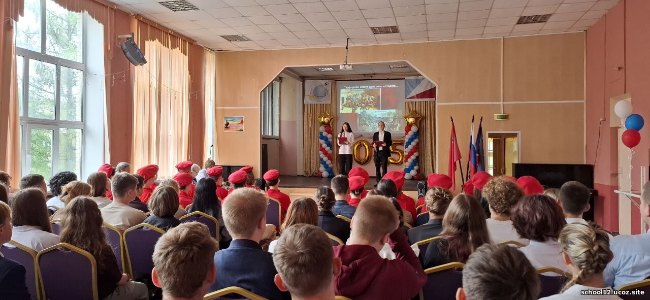 Сегодня в актовом зале нашей школы прошло мероприятие "Наш мир без террора", посвящённое Дню солидарности в борьбе с терроризмом.