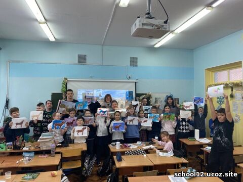 В заключении урока учащиеся нарисовали иллюстрацию к одному из его художественных произведений "Конь Мишка".